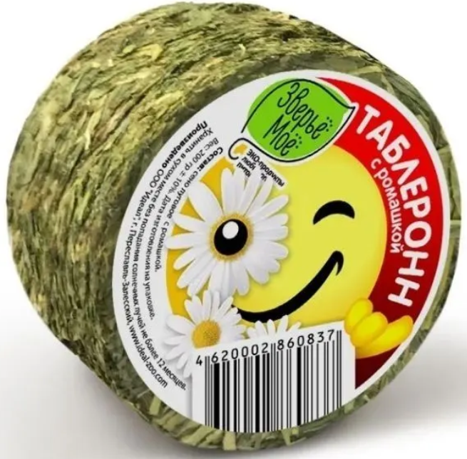 Купить Сено луговое "Зверье мое" Таблерон с ромашкой, прессованное для грызунов 200 г вы можете в компании Zookормов.ru, оформив заказ в интернет магазине, или