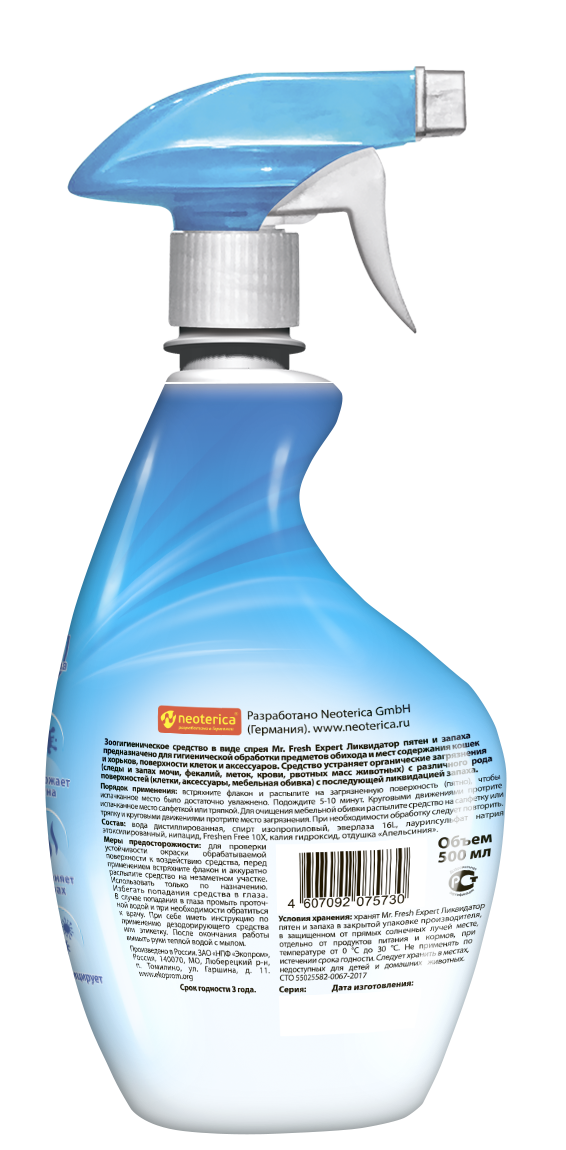 Mr.Fresh Expert ликвидатор пятен и запаха 3в1 для кошек и хорьков, 500 мл