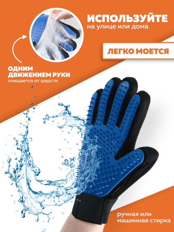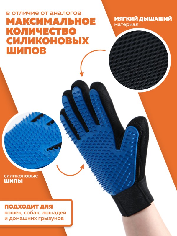 Купить Перчатка PerseiLine для вычесывания шерсти ПРАВАЯ (259 шипов) 23х15 синий вы можете в компании Zookормов.ru, оформив заказ в интернет магазине, или