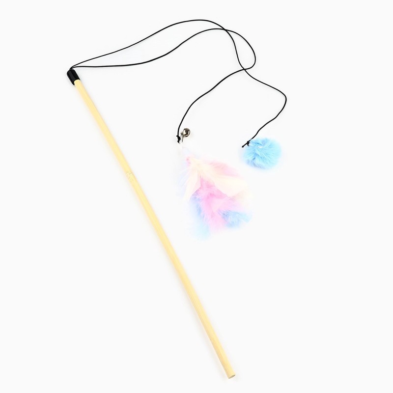 Игрушка дразнилка для кошек с пером и помпоном «Кошечка», микс цветов