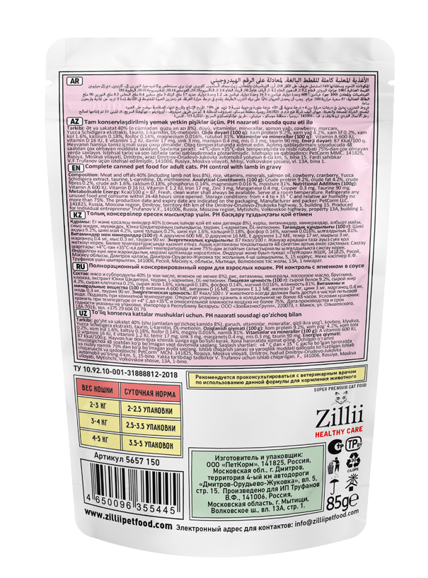 Купить ZILLII паучи для кошек URINARY CARE с ягненком в соусе 85г вы можете в компании Zookормов.ru, оформив заказ в интернет магазине, или