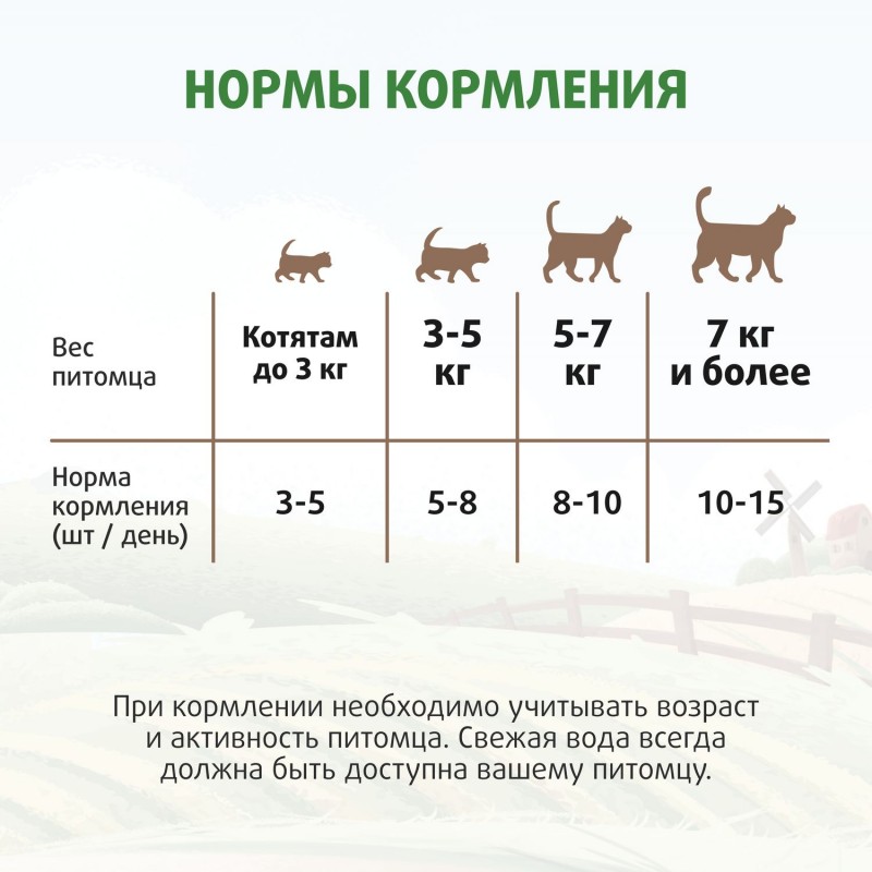 Хрустящие подушечки "Ферма кота Федора" с паштетом из курицы порадуют как активного исследователя, так и домоседа, и позволят почувствовать себя настоящим фермерским жителем. Натуральные ингредиенты с оптимальным количеством витаминов и минералов точно придутся по вкусу вашему питомцу. Без добавления исскуственных красителей, ароматизаторов и усилителей вкуса.