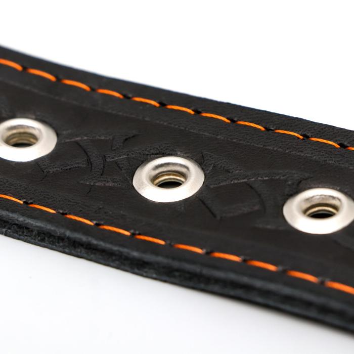 Купить Ошейник кожаный двухслойный клёпаный "Ёж", 65 х 3,5 см, ОШ 50-60 см, чёрный вы можете в компании Zookормов.ru, оформив заказ в интернет магазине, или