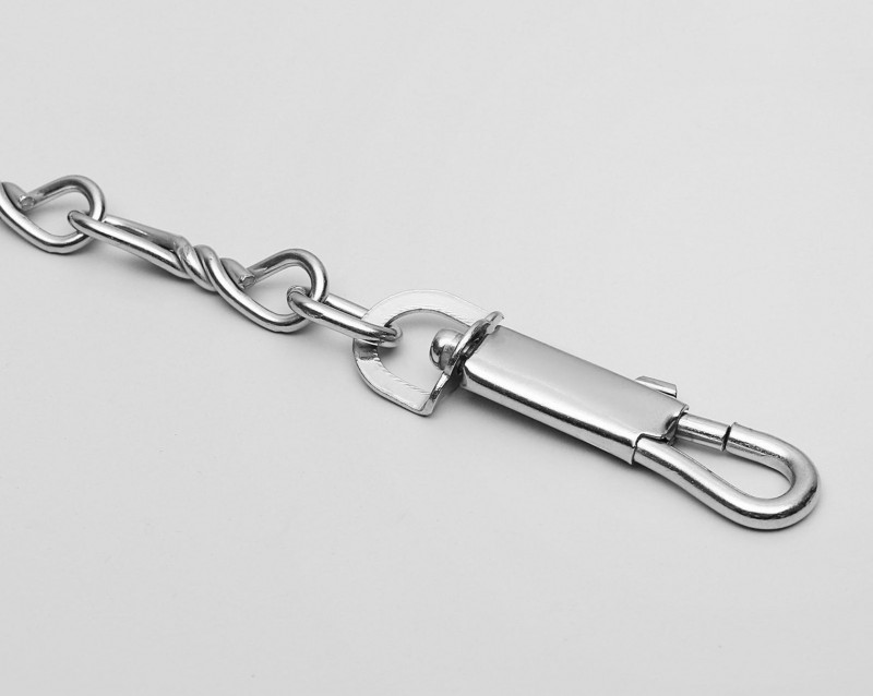 Поводок должен быть прочным и надежным. Металлический поводок полностью соответствует этим требованиям, плюс ко всему это красивый и износостойкий аксессуар. Поводок состоит из хромированной цепочки и мягкой нейлоновой ручки. Ручка прошита армированной нитью, удобно располагается в ладони и не натирает при натяжении. Поводок оснащен стальным карабином.