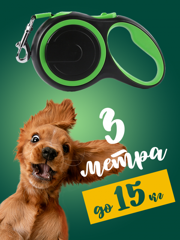 или отпустить для комфортной прогулки с собакой. Лента рулетки крепится за карабин ошейника. Практичная и эргономичная ручка рулетки удобно сидит в руке и не соскальзывает, рука не устает после длительного использования. Корпус выполнен из ударопрочного пластика.