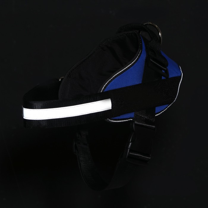 Шлейка мягкая, светоотражающая на шее, размер L, ОШ 60±15 см (липучка), ОГ 60-84 см, синяя