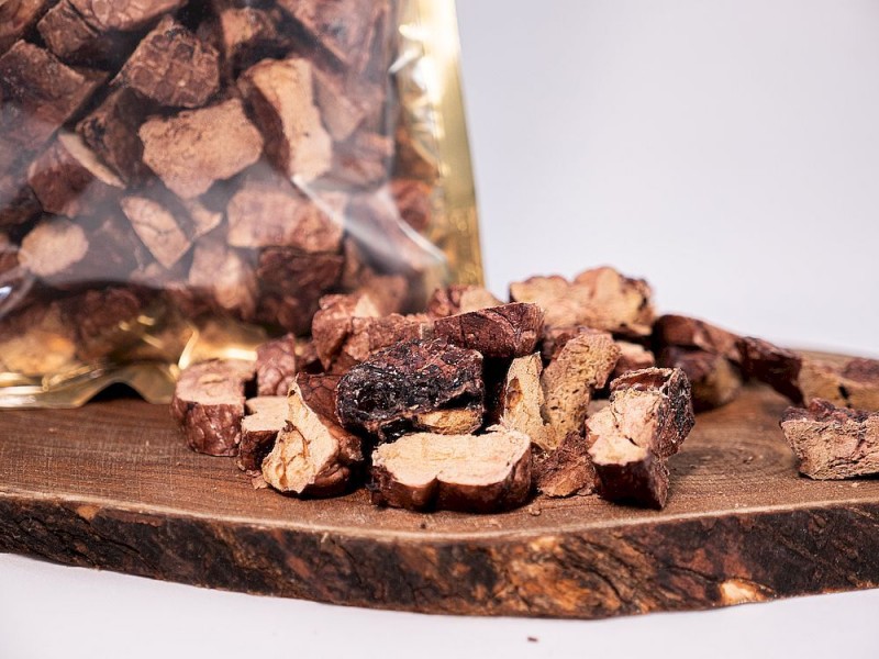 Низкое содержание жиров, делают данный продукт хорошим выбором для перекуса и дрессировки.
