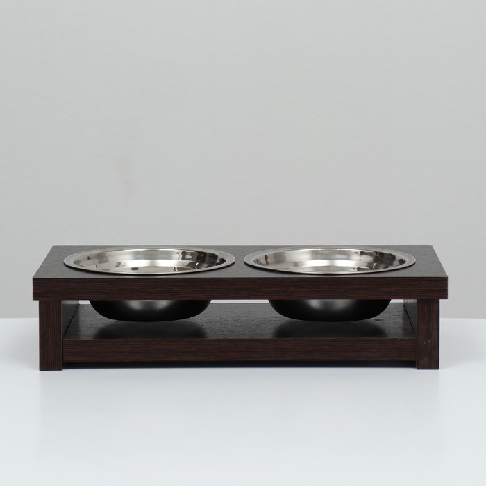 Кормушка с двумя мисками из пищевой нержавеющей стали, для небольших пород собак и кошек.