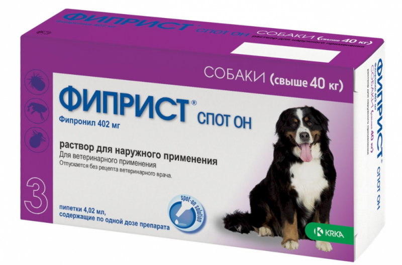 Комбинация 4 активных компонентов защищает питомца от повторного нападения блох и вшей до 8 недель, клещей – не менее 4 недель;